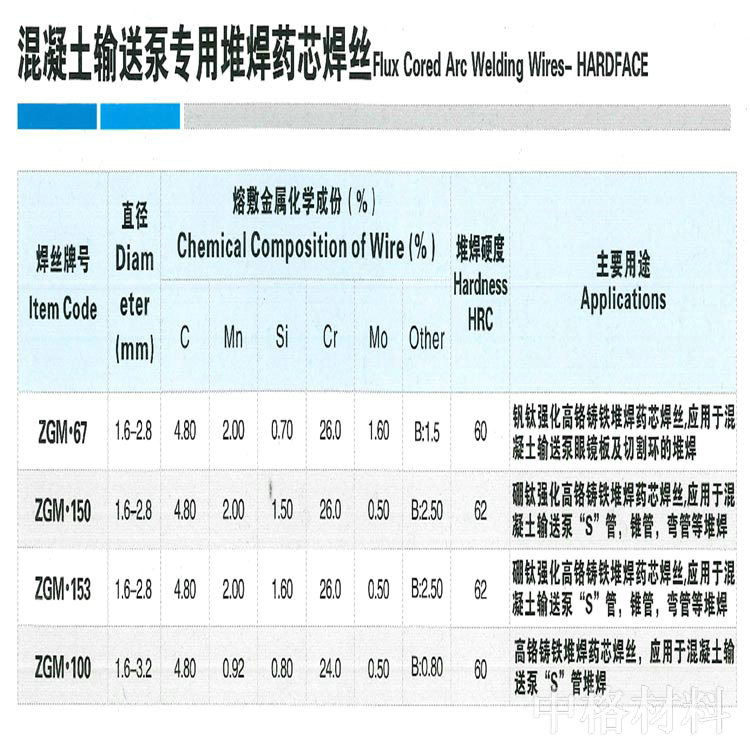 產(chǎn)品名稱:混凝土輸送泵專用堆焊藥芯焊絲